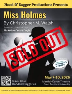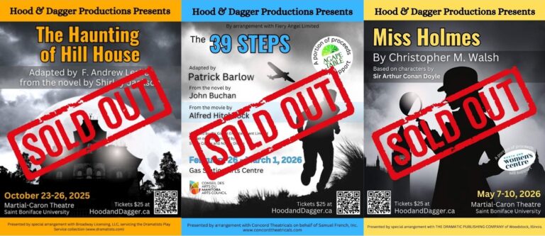 Hood and Dagger Productions is a registered charity in Winnipeg, Manitoba, founded in January 2024. We produce three-show Seasons of live community theatre, specializing in thrillers, mystery, and adventure.